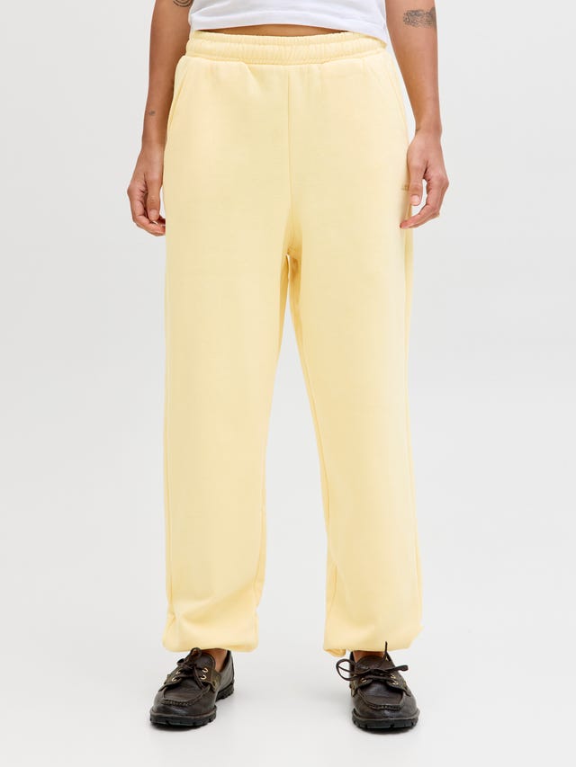 Pull on a sweatshirt or chunky knit for warmth and dimension. Mix proportions by pairing oversized tops with fitted bottoms or vice versa. It's all about balance and comfort.