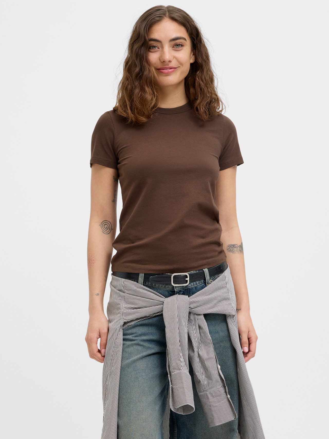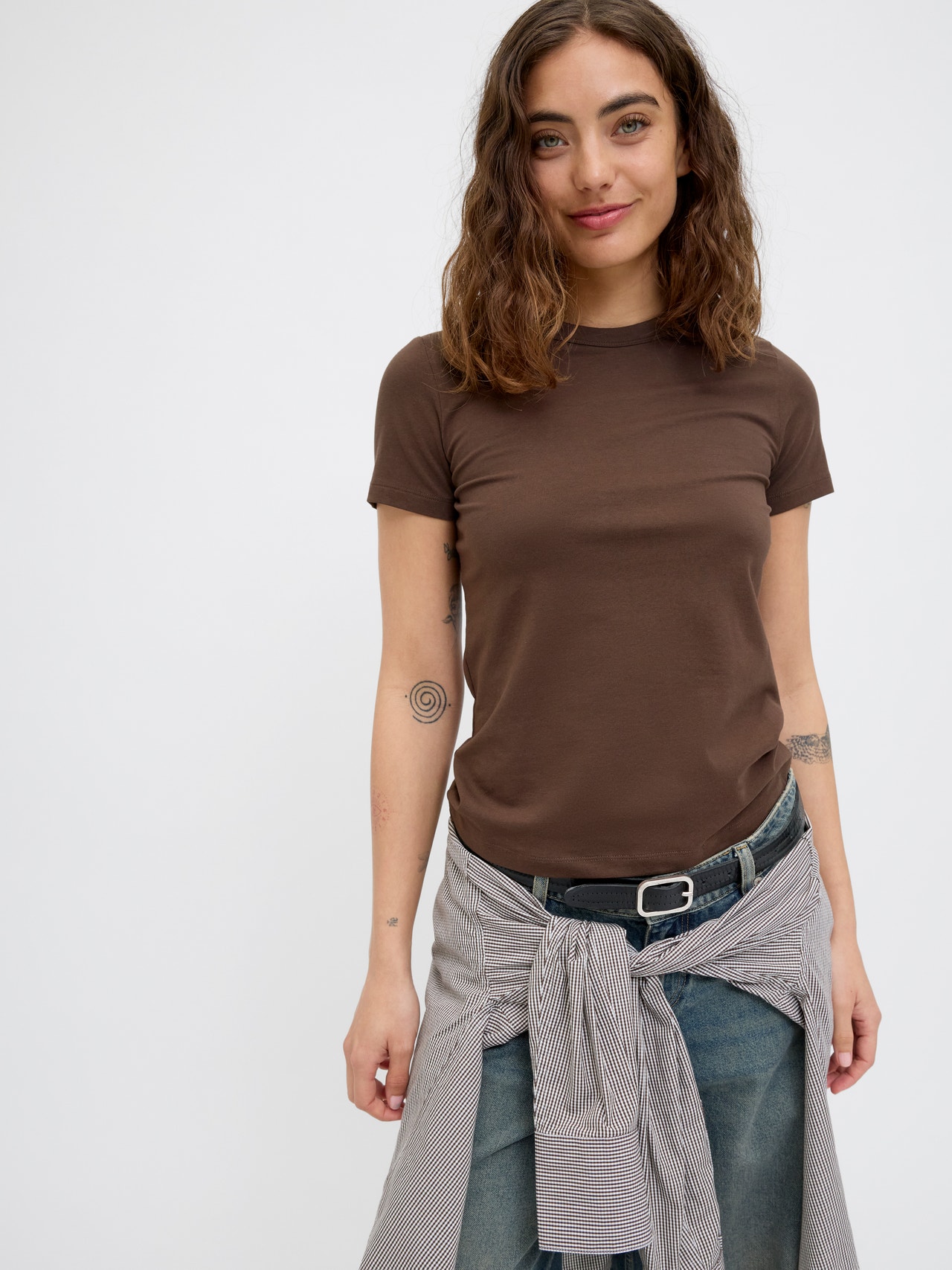 This basic T-shirt is a wardrobe essential that works well with jeans, shorts, and trousers. Combed jersey is stretchy and has a soft feel, perfect for everyday wear. - Product Type : T-shirt - Neck : Round neck - Sleeve : Short sleeves - Fit : Stretch Fit