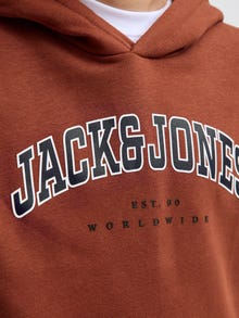 No closet is complete without a few dependable staples like sweats. Brushed fabric with a soft finish on the inside. Lightly brushed fabrics are defined by the inside of the fabric having a slightly hairy texture and a soft feel. Discover the cool world of Jack and Jones Junior, where fashion comes alive with a burst of youthful energy and vibrant charm. Our collections are a blend of fresh, trendy, and cool designs tailored to fit boys aged 3-16. Immerse yourself in high-quality, comfortable styles that highlight boys’ fashion. From cool fits to contemporary flair, Jack and Jones Junior redefines fashion for ages 3-16 and embraces the spirit of adulthood into every outfit. - Product Type : Hoodie - Neck : Hoodie - Sleeve : Long sleeves - Sleeves : Set in sleeves - Pockets : Kangaroo pocket - Print : Rubber print for a soft feel - Fit : Relaxed Fit