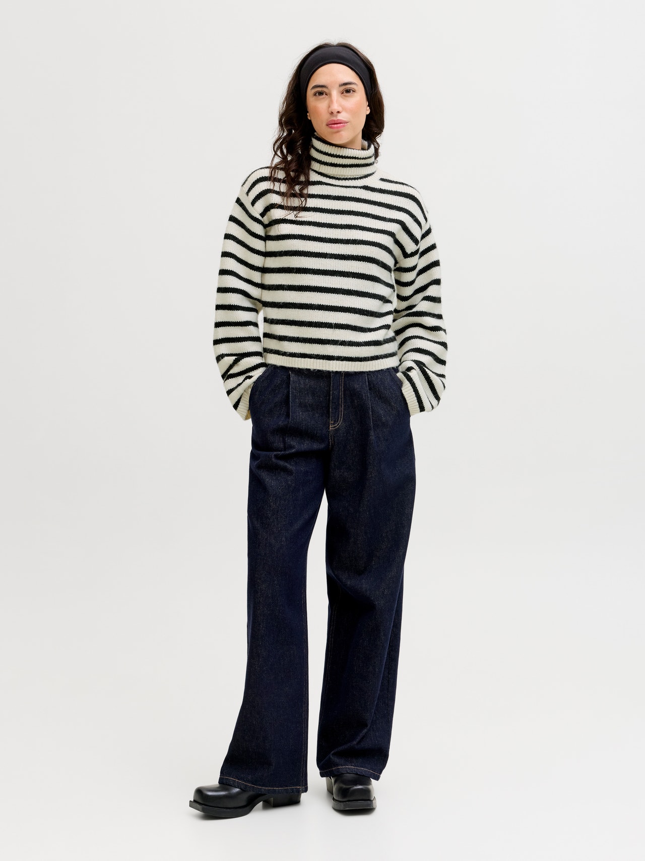 This basic knit goes with everything in your wardrobe. Flat knit is a knitted fabric with comfort and flexibility. - Product Type : Sweater - Neck : Roll neck - Sleeve : Long sleeves - Fit : Regular Fit