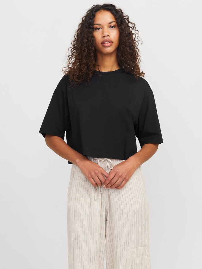 This basic T-shirt is a wardrobe essential that works well with jeans, shorts, and trousers.