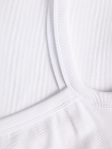 This basic T-shirt is a wardrobe essential that works well with jeans, shorts, and trousers. Rib knit has vertical ridges and is very stretchy for a comfortable feel. - Product Type : Top - Neck : Square neck - Sleeve : Sleeveless - Fit : Standard Fit