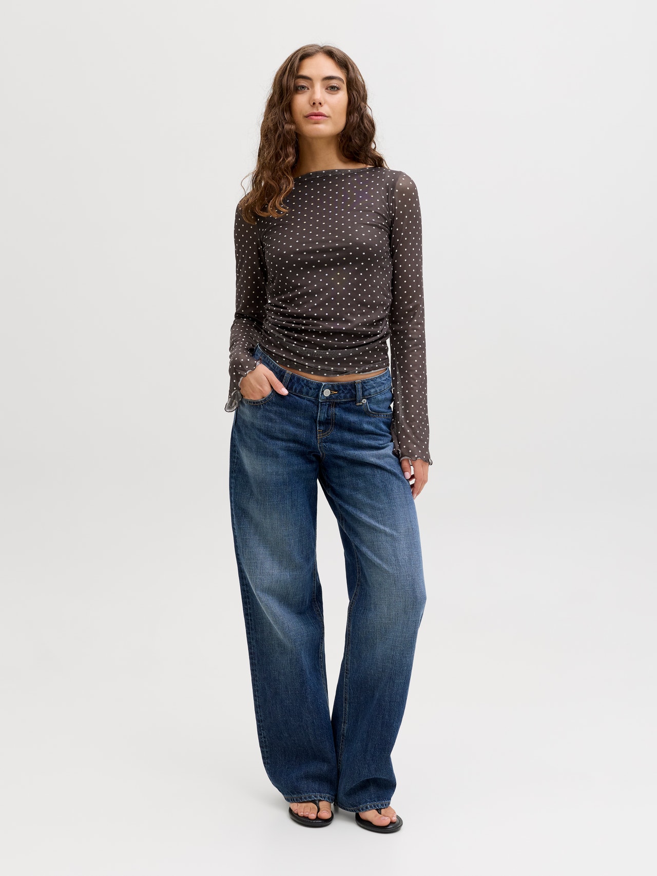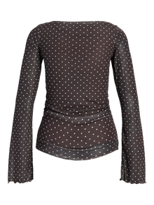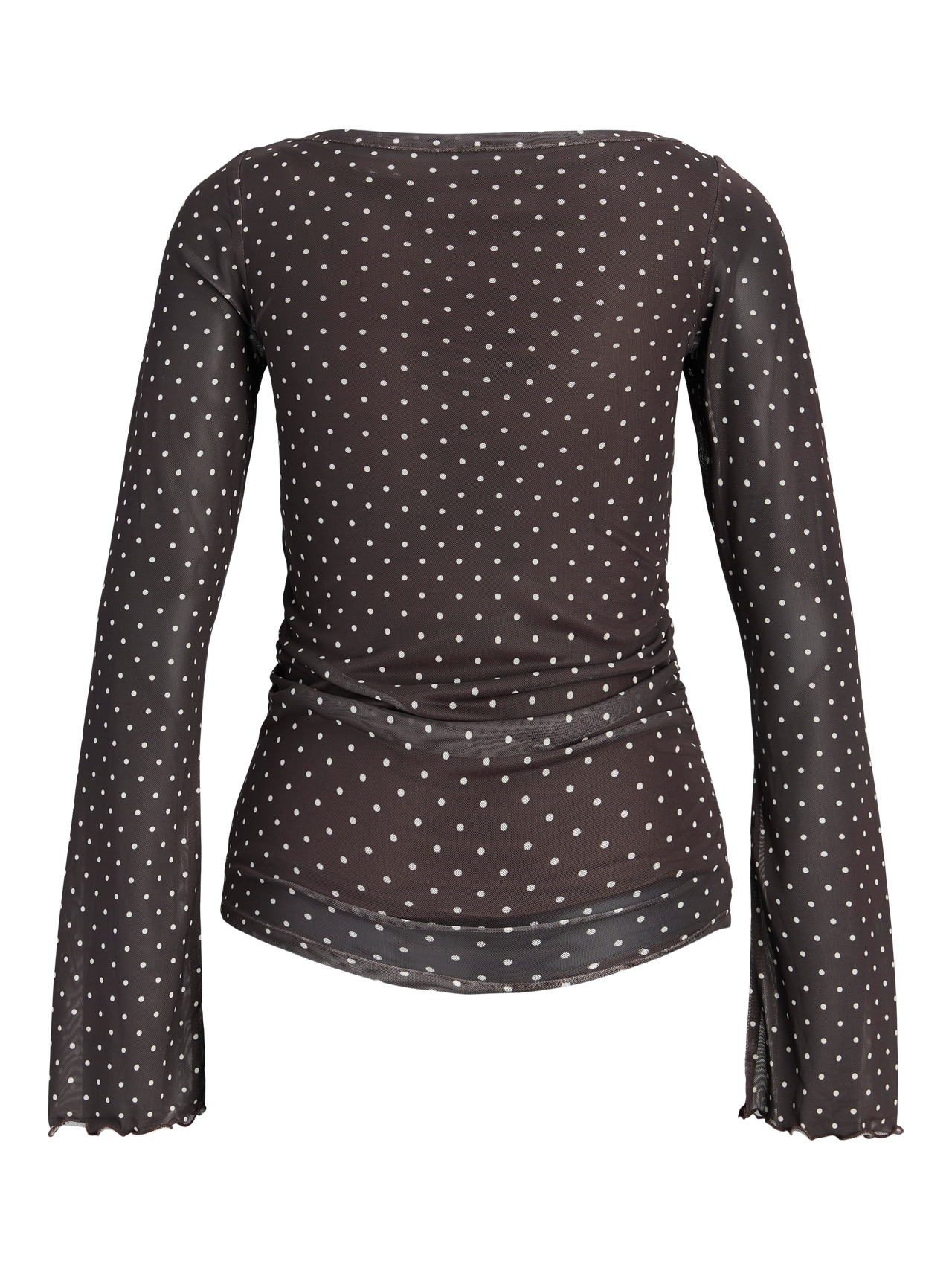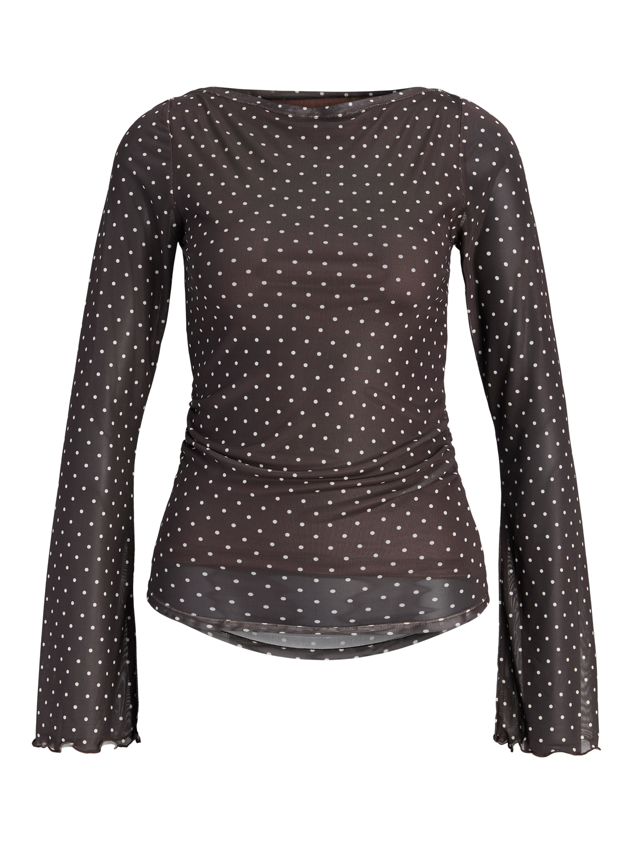 Be the best-dressed guest with our party styles. Mesh fabric is a stretchy, lightweight, and sheer fabric that has a grid similar to net fabrics. - Product Type : Top - Neck : Boat neck - Sleeve : Long sleeves - Extra details : Smock detail - Fit : Tight Fit