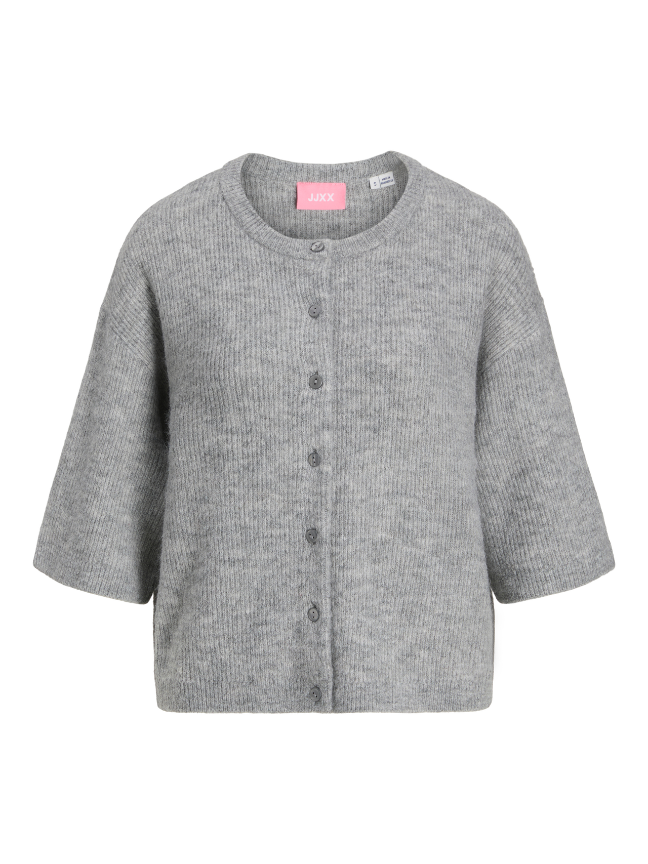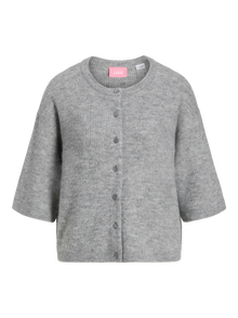 This basic knit goes with everything in your wardrobe. Flat knit is a knitted fabric with comfort and flexibility. - Product Type : Cardigan - Neck : Crew neck - Sleeve : Short sleeves - Closure : Button fastening - Fit : Loose Fit