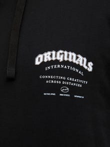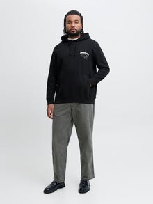 No closet is complete without a few dependable staples like sweats. Cotton is a natural fiber known for its soft and breathable properties. Plus styles are designed to fit plus-size bodies. - Product Type : Hoodie - Neck : Hoodie - Sleeve : Long sleeves - Sleeves : Set in sleeves - Pockets : Kangaroo pocket - Extra details : Badge - Print : Print placed on the front and the back of the product - Fit : Standard Fit