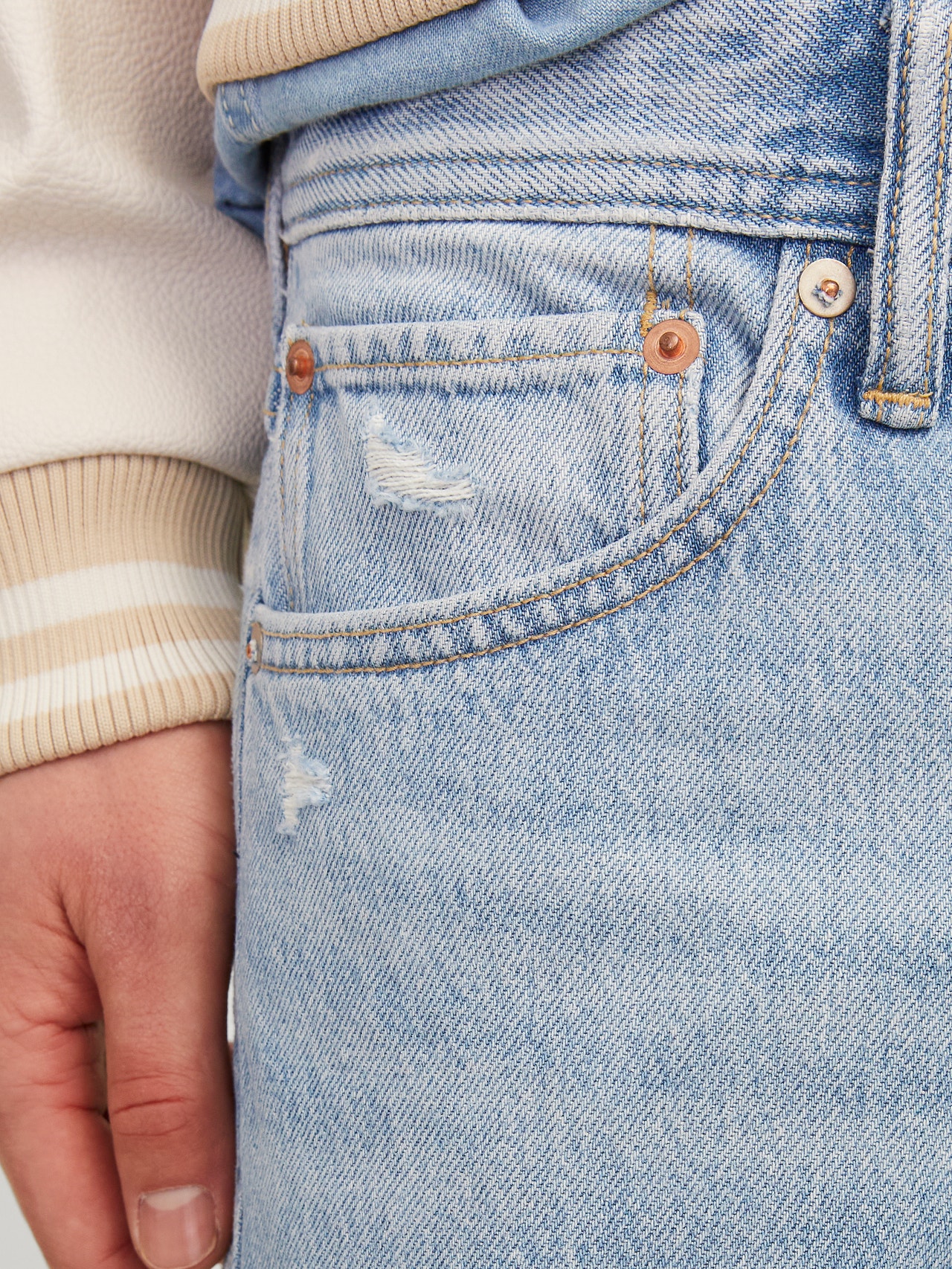 Original est le détail classique des cinq poches. Intemporel, simple et comme il l'a été depuis le tout début. C'est ce qui en fait un produit sur lequel on peut toujours compter, comme tout bon jean. Le denim est un tissu sergé résistant caractérisé par une chaîne de fils teinte et une trame écrue qui sont tissés ensemble. - Type d'article : Jean à coupe décontractée - Fermeture : Fermeture à boutons - Poches : Poches arrière, Poche pour la monnaie, Poches avant - Taille : Taille haute - Lavage/finition : Déchirures ouvertes - Coupe : Ajustement détendu avec un gratte-ciel, une cuisse détendue, un genou détendu et une ouverture de jambe détendue
