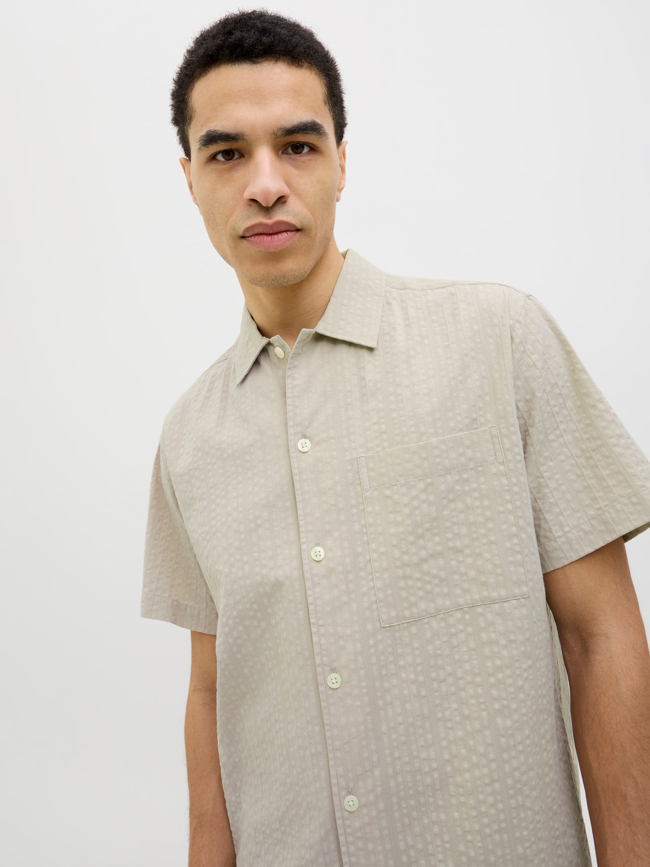 Améliorez votre garde-robe basique avec une chemise intemporelle de qualité, parfaite pour le quotidien. Le seersucker est un tissu léger à l'aspect froissé qui offre une sensation de respirabilité et de fraîcheur. - Type d'article : Chemise - Col : Col chemise - Manche : Manches courtes - Fermeture : Fermeture à bouton - Poches : Poches à la poitrine - Coupe : Coupe décontractée